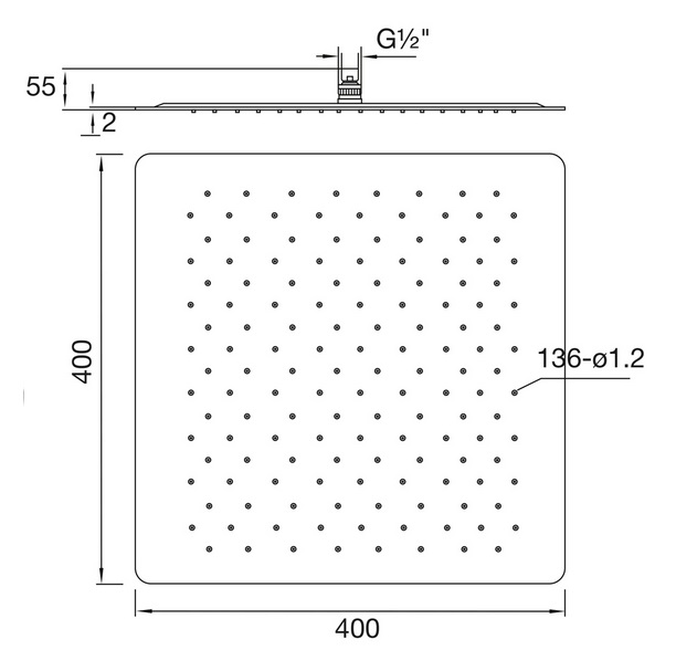Regendouche Stein39 ultra dun in 40 cm is geheel vervaardigd uit messing en daarna verchroomd.