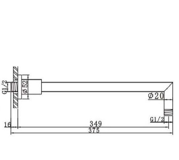 Douchearm met haakse bocht van 35cm.