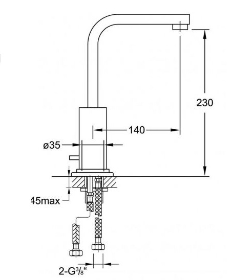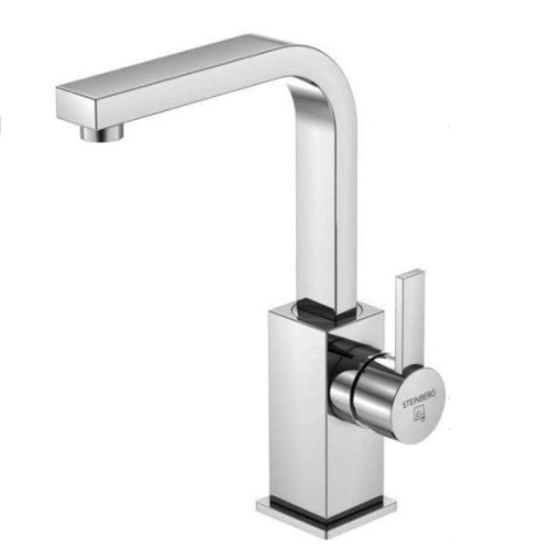 Wastafelkraan Stein120 is een strakke design kraan met een hoge haakse draaibare uitloop