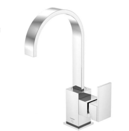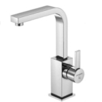Deze kraan met een hoge platte draaibare uitloop zal extra glans geven aan uw badkamer.
