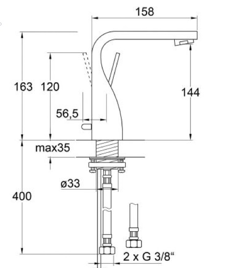 Steinberg230 wastafelkraan heeft slanke hoekige en afgeronde ronde vormen.