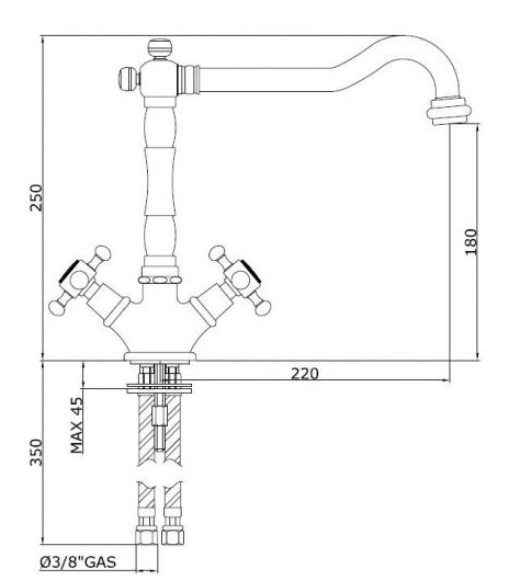 Duetto keukenkraan is een klassieke kraan met een leuke aparte verbreding bij het einde van de uitloop is.