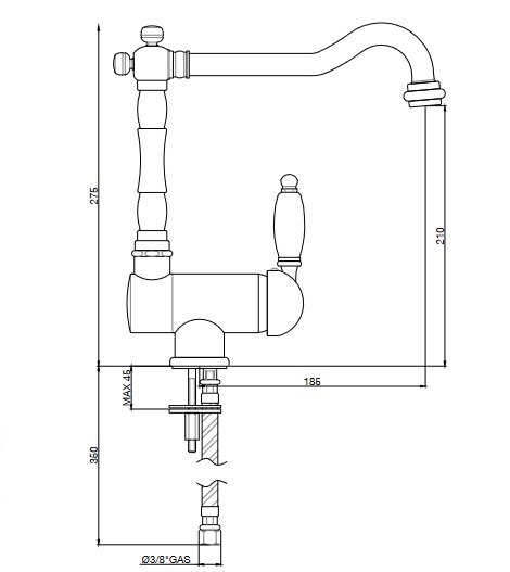 Tegen meerprijs is de keukenkraan Imperial ook te verkrijgen in Antiek Brons (geel bruin) of Antiek Koper (rood bruin
