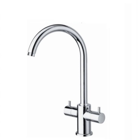 RVS keukenkraan Colorado met horizontale hoek in PVD geborsteld koper