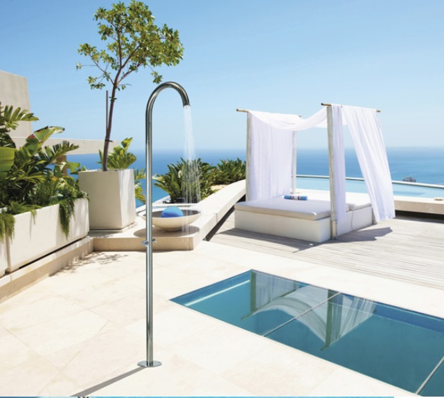 jacuzzi of zwembad. Met deze RVS buitendouche haalt u iets moois in huis.