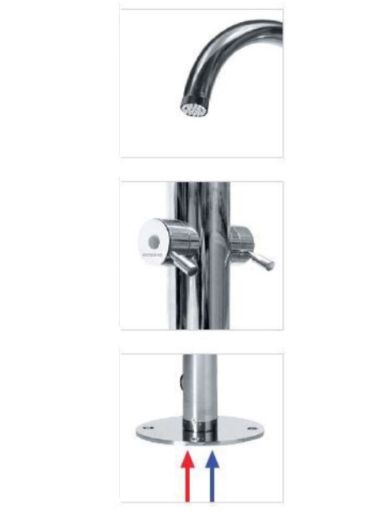 Deze mooi slanke buitendouche heeft een 2 bedieningshendeltjes waardoor u zelf het water kunt mengen