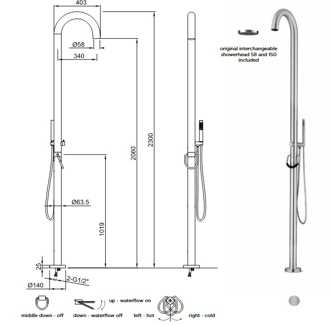 in uw badkamer, tuin, buitenverblijf, naast het zwembad of jacuzzi. Met deze buiten/binnendouche kunt in de zomer lekker afkoelen