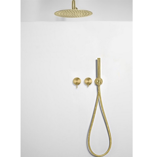 Picolo RVS geborsteld goud inbouw doucheset met thermostaatkraan en losse omsteller heeft men