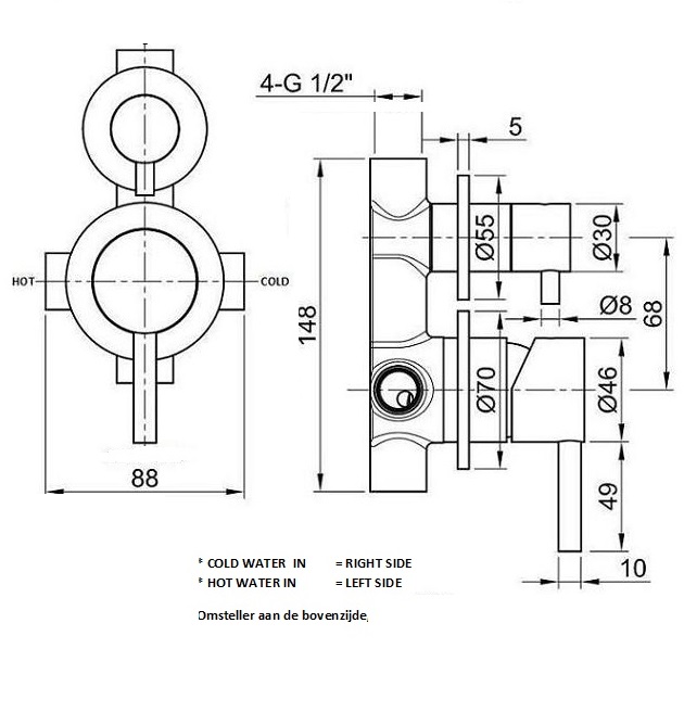 Deze RVS Picolo inbouw doucheset met mengkraan en vaste omsteller is een goede keuze als u de temperatuur zelf wilt regelen.
