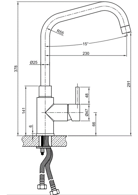 Standaard wordt flexibele aansluitslangen en een bevestiging meegeleverd