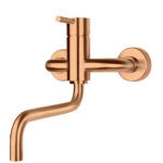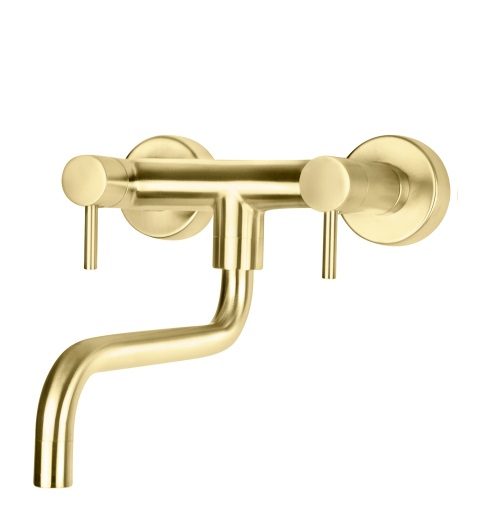 Tweegreeps Picolo RVS keuken wandkraan in PVD geborsteld goud
