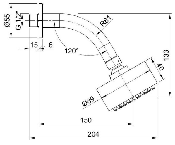 Hij wordt compleet geleverd met een korte uitloop. Mocht u niet houden van regendouches