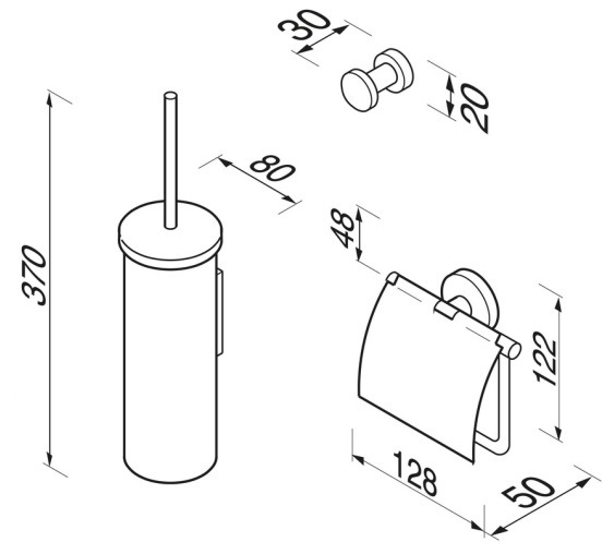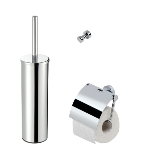 Deze set bestaat uit een toiletrolhouder met deksel een toiletborstel en een
