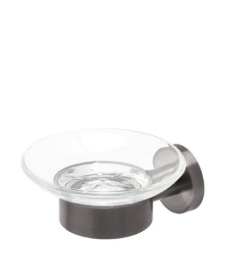 Mat zwarte zeephouder Nemox met glazen schaal is de oplossing om handzeep